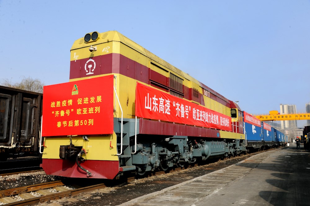 On the afternoon of February 21, "Qilu" Eurasia Railway Express, operated by Shandong Hi-Speed Group, launched its 50th train since the Spring Festival and its 120th this year. The train, carrying a total of 42 containers of mechanical equipment...